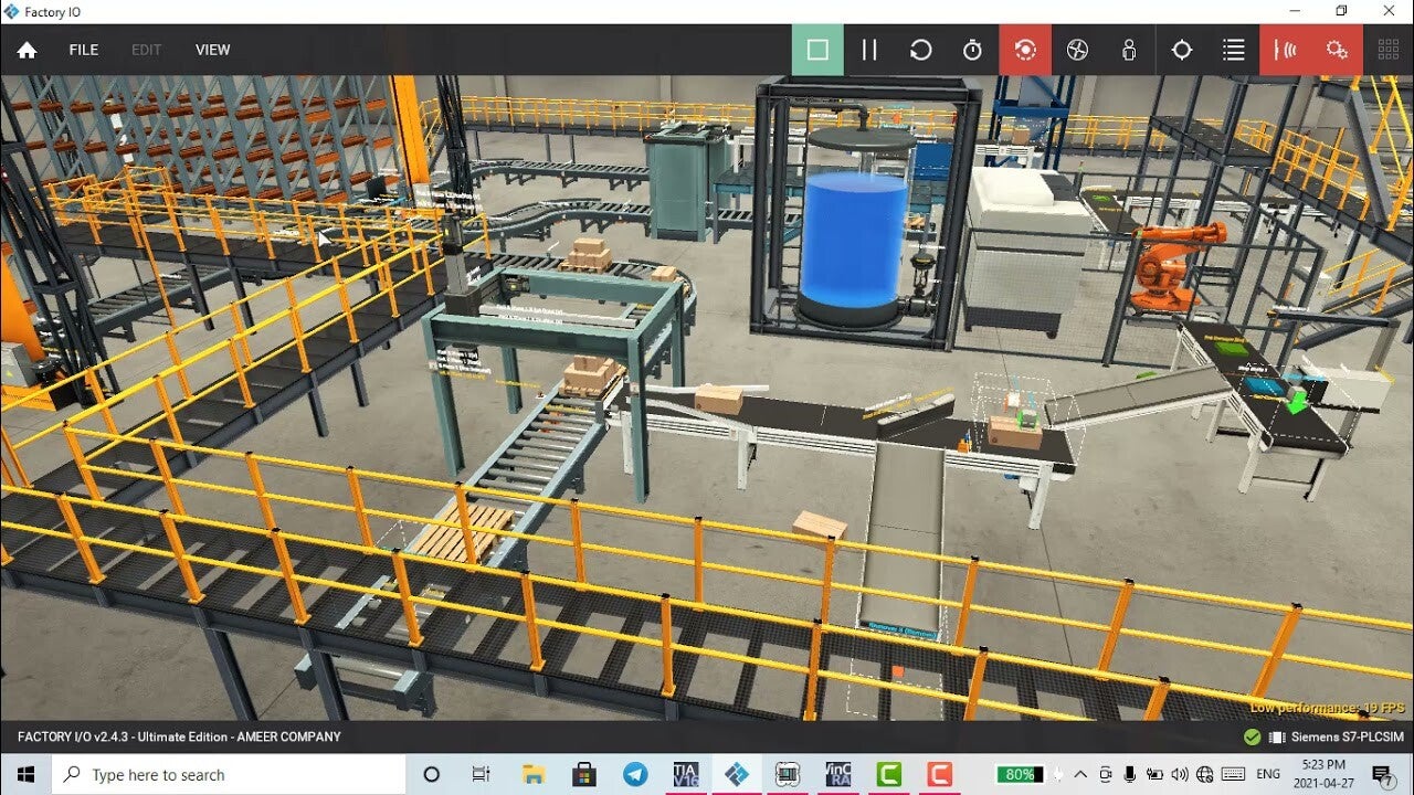 The PLC section was really interesting. During the course, we used Siemens hardware and software, where we learned two types of programming: ladder logic (LAD) and structured text (ST). To verify the logic worked correctly, we used a program that simulates conveyor and containment machines in 3D. This tool allows us to debug the process.