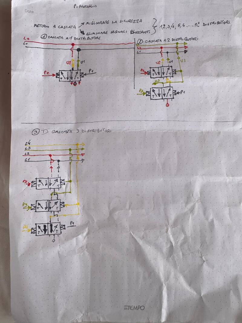 Industrial pneumatics is a very important sector in the industrial world, but it's undervalued. During the course, we saw movement sequences performed not by PLC-controlled solenoid valves, but by valves with limit switches and buttons that control subsequent movements using air. To create the panel in the lab, we first drew the connection diagrams.